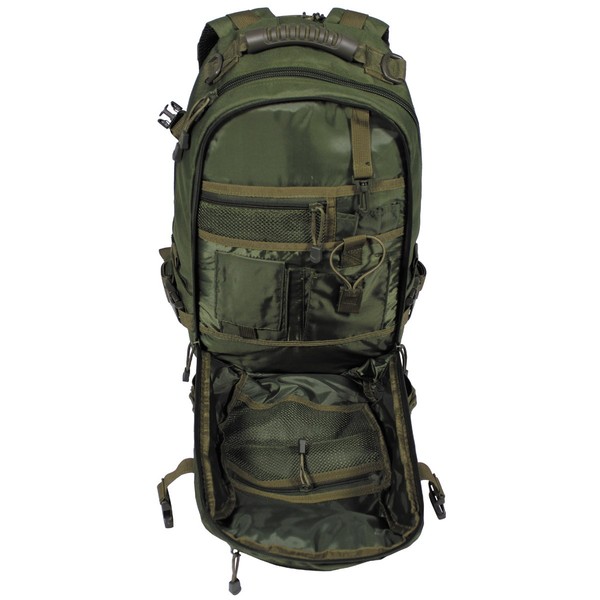 Batoh s polstrovanými zády i popruhy. Má bederní i hrudní pás. Kromě velké hlavní kapsy a mnoha menších kapes má batoh i speciální přihrádku pro možnost vložení hydratačního vaku, nebo notebooku. Je vyroben z pevného polyesteru 900D - jedná se o odolnou variantu s vyšší ochranou proti poškození.