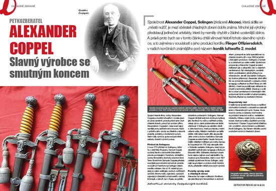 Alexander Coppel – slavný výrobce se smutným koncem se jmenuje další článek našeho slovenského spolupracovníka PetkoZberatele, který vám představuje unikáty ze své výjimečné sbírky chladných zbraní – tentokráte je to kordík Flieger Offiziersdolch, v našich končinách známější pod názvem kordík luftwaffe 2. model. Jak se podařilo vrátit lesk jednomu nálezu, popisuje hledač JendaKvaska v článku pod všeprozrazujícím názvem Renovace důstojnické přezky československé armády. Pravidelná rubrika Listárna se tentokráte vrací k článku Vzpomínka na akci ponorka. Přivedli jste k hledání někoho dalšího? To je otázka, kterou jsme položili hledačům ve vaší oblíbené Anketě. Zájemci o vojenskou techniku ani tentokráte nepřijdou zkrátka – studie z pera historika vojenské techniky Jana Škarky se věnuje dalšímu vynikajícímu produktu Firmy Škoda KI 37/70mm pěchotnímu dělu BA/AB Tajemství – tak nazval svou povídku nejen pro detektoráře Zdeněk Jarchovský. Na vaše dotazy ohledně nálezů knoflíků odpovídá v pravidelné rubrice Knoflíkářova poradna jejich sběratel a znalec Ivo Tomáš.