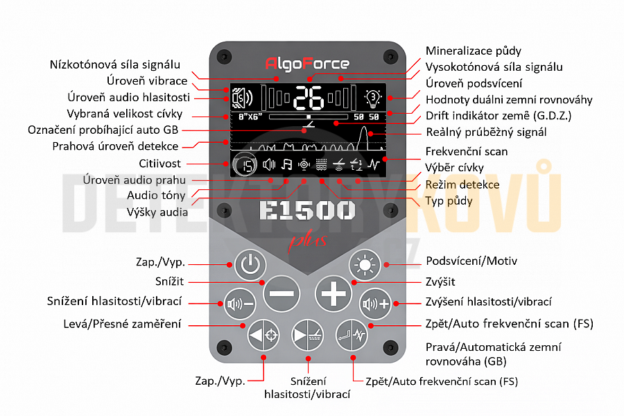 AlgoForce E1500 Plus je špičkový pulzně indukční (PI) detektor kovů vyvinutý a vyráběný v Austrálii společností AlgoForce Pty Ltd. Je určen především pro hledání velmi drobných zlatých nugetů v silně mineralizovaných půdách, typických pro zlatonosné oblasti.
