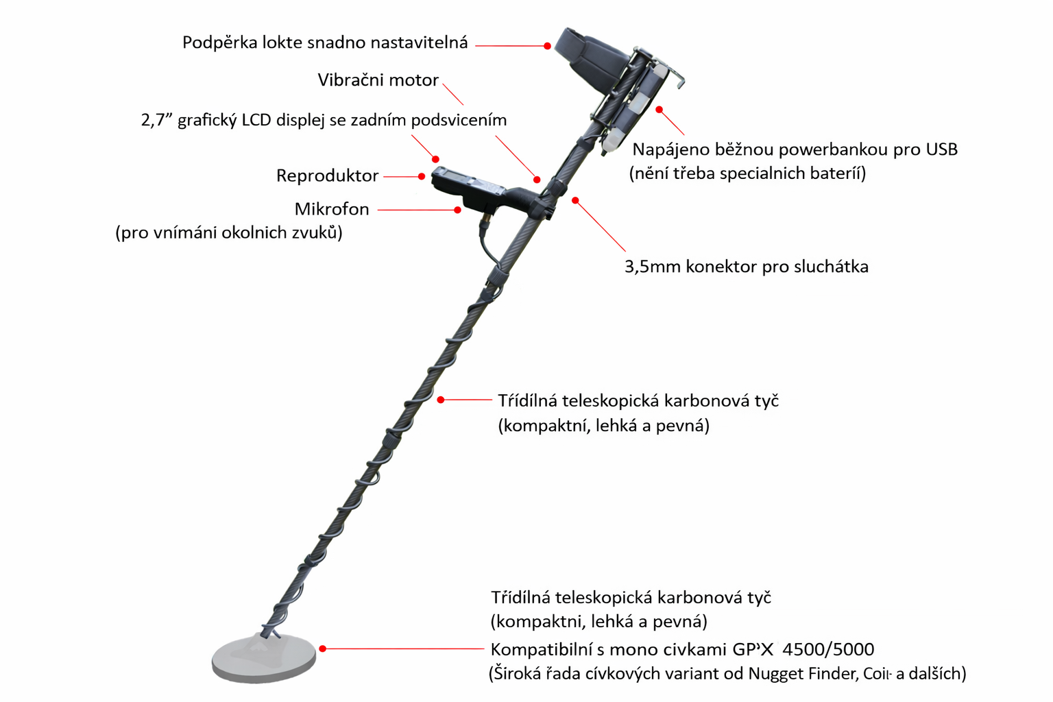Model je kompatibilní s GPX 5-pin mono cívkami, včetně cívek značek Coiltek, Nugget Finder a dalších. Uživatel si tak může zvolit konfiguraci podle typu hledání.
