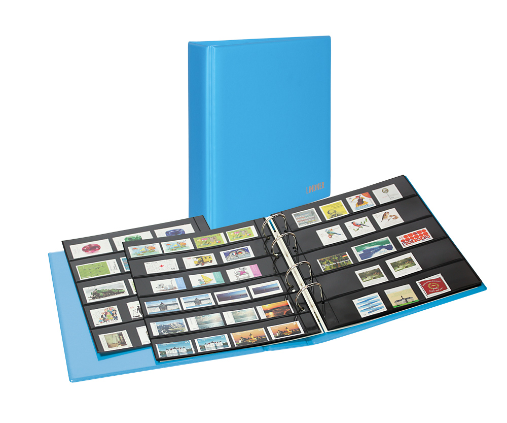 Velmi kvalitní album na známky LINDNER s kroužkovou vazbou v moderním designu. Vybaven deseti známkovými fóliemi s možností dokoupení dalších.