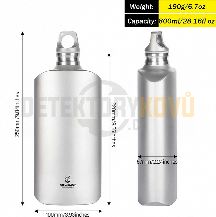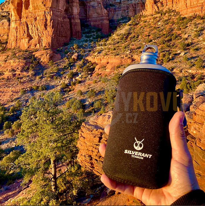 Ultralehká, odolná láhev SilverAnt z titanové slitiny o objemu 800 ml je vyrobena pro celoživotní dobrodružství. Noste svůj oblíbený nápoj všude s sebou, do kanceláře, při sportování, na turistiku i cestování. Praktický plochý slim tvar nepřekáží v batohu a lépe padne i do postranních kapes. Láhev má víčko s poutkem, takže se dá uchytit např. za karabinu. Dodává se s termo pouzdrem, kávu a čaj si vychutnáte déle teplé a v létě Vám pouzdro udrží optimální teplotu chlazených nápojů. Použitý materiál nepředává přenášeným tekutinám žádné pachutě ani pachy. Neobsahuje BPA a je odolná vůči korozi.