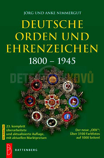 Katalog německých řádů a vyznamenání pro období 1800-1945. Obsahuje více 4100 položek z nichž tvoří přes 800 položek odznaky a řády Třetí říše. Téměř 200 nových barevných ilustrací. 22. aktualizované vydání (březen 2019). Velmi kvalitně zpracováno. Výborný nástroj pro všechny sběratele. Vznikly za podpory renomovaných aukčních síní, sběratelů a obchodníků.