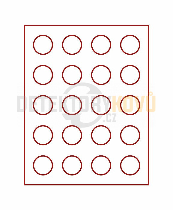 Kazeta na mince s kruhovými otvory. O maximálním průměru mince/kapsle 38 mm.