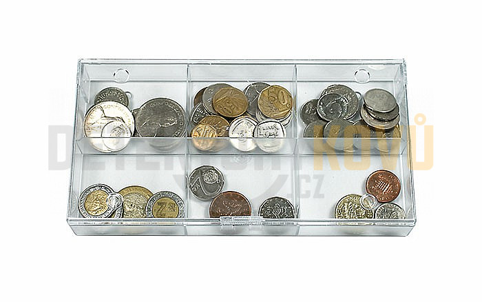 Průhledný box se 6 přihrádkami pro Vaší sbírku předmětů.
