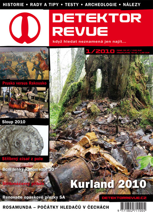 Pro nepředplatitele malou ochutnávku. Číslo jsme zahájili článkem kolegy Wooda, o jeho pátrání po havarovaném letounu. Lišák si pro Vás ve svém restaurátorském okénku připravil renovaci opaskové přezky SA. Velkou hledačskou výpravu do Lotyšska deníkovým způsobem zpracoval UC, a že nezahálel ani jeho fotoaparát, se můžete přesvědčit sami. Antonín Gibiš přehledným, chronologickým způsobem zpracoval dějiny bojů mezi Pruskem a Rakouskem, zejména co se týče našeho území. Badatele v dějinách dělostřelecké techniky asi netřeba představovat - tentokrát si vzal na paškál 8cm lehký kanon vzor 30. Kolega Acci nás vždy něčím zajímavým překvapí, tentokrát článkem Rosamunda byla první, aneb počátky hledačů v Čechách. Následuje povídka Václava Moravce s příznačným názvem: Kdo tě asi nosil na krku?, a poté se můžete pokochat nálezem i soutěžním příspěvkem Zdeňka Kovaříka. A když už jsme u té soutěže, dozvíte se také, jak dopadlo hlasování o detektor XP Gmaxx a další ceny. Ohlednutí za vydařeným setkáním hledačů ve Sloupu si připravil UC, poté se můžete seznámit s pivními uzávěry za protektorátu. Další díl svátostek B. Přibila pojednává o svátostkách vztahující se ke Kynžvartu, Kostomlatům, Královu Dvoru, Krupce, Kutné Hoře, Libáni, Libici nad Cidlinou a Litoměřicům. Kolega Reifferscheidt v článku Císař z pole popisuje nález římského denáru i osud císaře, jehož hlava denár zdobila.