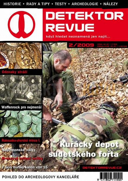 V tuto chvíli by již hezkých pár dní měli mít všichni předplatitelé nové číslo časopisu Detektor revue doma. Pro ty, kteří si časopis kupují individuálně přinášíme malou ochutnávku obsahu č. 2/09. Hned v úvodu se můžete seznámit s hledačskou reportáží o výpravě do krajiny ústupových cest a zamrzlé minulosti. Mnoho hledačů již objevilo pod cívkou detektoru křesací ocílku, nejčastěji ve tvaru psa. Proto jsme do čísla s radostí zařadili badatelský článek, který se pokouší naléz některé odpovědi o těchto sympatických pomůckách našich předků z pera kolegy Kacura. O tom, že archeologové to nemají vůbec lehké se dočtete v článku Kamila Smíška. V rozhovoru s badatelem Filipem Vojtáškem si budeme povídat o hloubkařích na našem území na sklonku války. O tom, jak lze skloubit povolání dálkového řidiče s detektorářstvím se podělila sympatická dvojice Myšák a Veverka. O válkách legendárního vojevůdce malé postavy, ale velkých činů začínáme seriál pro zájemce o napoleniku od Dlouhána a P. Vágnera. Badatel Jan Škarka připravil pro všechny koho zajímá vojenská technika zajímavou a podrobnou studii o 7,5cm Horském kanonu vzor 15. Pro numismatiky jsme připravili první díl seriálu o mincích, konkrétně o rakouských ražbách konce monarchie. Nezapoměli jsme ani na Lišáka, jehož restaurátorské kousky jsou někdy až neuvěřitelné – tentokrát si Lišák posvítil na motocykl NSU 1934. Autorskou povídku o prolínání času při hledání na dávném bojišti i s originálním grafickým doprovodem nám zaslal kolega Mintaur. Věříme, že se vám bude líbit stejně jako nám. S prazvláštním fenoménem dětských uniforem vás slovem a zejména obrazem seznámí Acci. Většina z vás jistě někde viděla (méně šťastlivců ho našlo pod cívkou) krásný, velký oválný odznak s nápisem Přísežná stráž. O různých variantách odznaků, podmínkách jeho nošení i udělování si přečtete ve fundovaném článku kolegy Václava Kaděry. Pokud vám zbude v letní hledačské sezóně trochu času na čtení, věříme, že vás nové číslo časopisu Detektor revue zaujme a že si v něm každý najde to svoje.