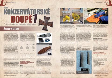 Těm, kteří se nechtějí ke svým nálezům chovat macešky či je nesprávným ošetřením nevratně poškodit, doporučujeme náš nový seriál Konzervátorské doupě. Se zkušenostmi ze své praxe muzejního konzervátora se s vámi podělí acci. V prvním díle poradí, jak pečovat o nálezy z železa a litiny. Marie Terezie (1717–1780) narozená před 300 lety si zaslouží naši pozornost nejen proto, že se nám občas pod cívkou zjeví mince s jejím portrétem. S článkem o této výjimečné panovnici přichází autor oblíbeného seriálu Korunová měna na území Čech, který znáte z DR, Martin Furugláš. O své vášni pro posly z minulosti píše sběratel vojenských bodáků Jozef Bučko v článku Kouzlo starých věcí. Návrat na formanskou cestu se jmenuje reportáž Adama Krejčíka z druhé výpravy do tajemných Brd, na místa srážky císařského a stavovského vojska v roce 1620. O vzdělání - tak trochu kantorsky nazvaná ale nementorsky napsaná glosa wooda vychází z toho, že "z neznalosti vyplývá nezájem, z nezájmu ignorantství a posléze vandalství". Zájemci o vojenskou techniku jistě uvítají další studii z pera historika vojenské techniky Jana Škarky, tentokrát na téma 4,7cm tankový kanon Škoda (A9 a A11). A na závěr se určitě všichni těšíme na osmé pokračování deníku našeho kolegy hledače Jardy, který si psal od 90. let, tedy v pionýrských dobách detektoringu u nás. Přetiskujeme jej pod názvem Hledačský testament.