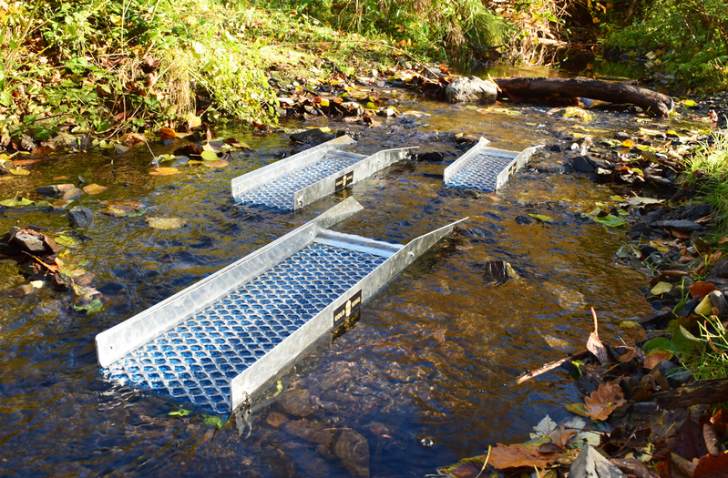 Splavy jsou vyráběny kompletně z hliníku, aby bylo dosaženo nízké hmotnosti a velké odolnosti. Na začátku splavu je umístěna vroubkovaná guma, která slouží jako inspekční plocha, na které se zachytávají první zlatinky a zároveň chrání splav před možnými údery lopatou. Velmi rychle tak zjistíte jestli jste na správném místě a jestli máte správně nastavený splav. Hlavní část splavu je po celé délce pokryta pečlivě zvoleným tahokovem, který spolehlivě odstraní hrubší materiál a kameny. Zároveň vytváří po celé své ploše vířivé proudění, které výrazně zvyšuje efektivitu plavení. Pod tahokovem se nalézá speciální zlaté rouno s plnou spodní vrstvou, která zabraňuje úniku zlatinek. Při správně zvoleném sklonu splavu a odpovídajícímu proudu vody se drtivá většina zlatinek zachytí v první polovině splavu.