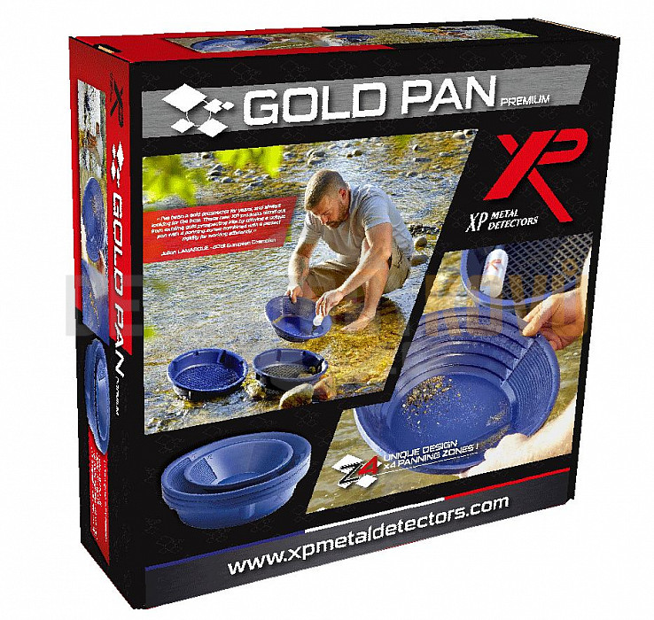 Rýžovací pánve XP mají k dispozici 4 rýžovací zóny. Hrubé žlábky pro rychlé odplavení větších kamínků, jemnější žlábky dočištění, speciální povrch „hadí kůže" pro nejjemnější zlatinky a hladký povrch pro výplach. Rychleji a precizněji tak docílíte prorýžování materiálu v pánvi.