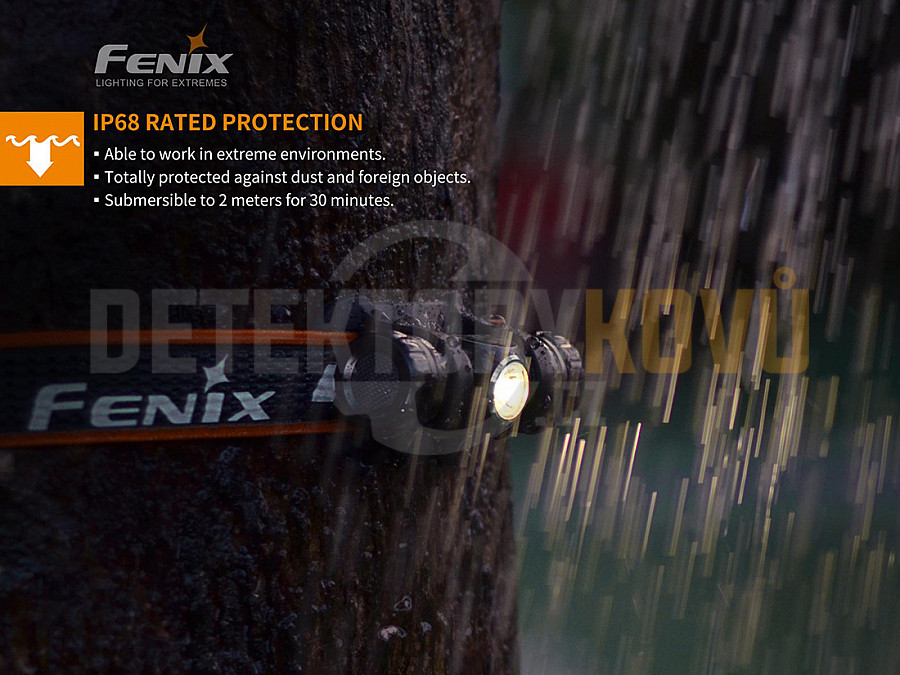 Kompaktní LED čelovka Fenix HM23 nabízí světelný tok až 240 lumenů (ANSI) a dosvit 53 metrů. K napájení je použita jedna tužková AA baterie, se kterou dosahuje výdrž až 100 hodin v nejnižším režimu (více než 4 dny). Světelným zdrojem je špičková Cree LED s teplejším odstínem světla (neutral white). Výhodou tohoto odstínu světla je přirozenější a kontrastnější podání barev v přírodě. Díky preciznímu provedení těla z hliníkové slitiny a držáku z odolného silikonu je HM23 nárazuvzdorná pádům z výšky až 2 metrů a také plně prachotěsná a vodotěsná dle standardu IP68. Čelovka nabízí celkem tři režimy výkonu a elektroniku s funkcí prodloužení výdrže, v režimech 240 a 70 lumenů postupně snižuje výkon pro dosažení delší doby svícení (viz. graf výdrží v jednotlivých režimech).