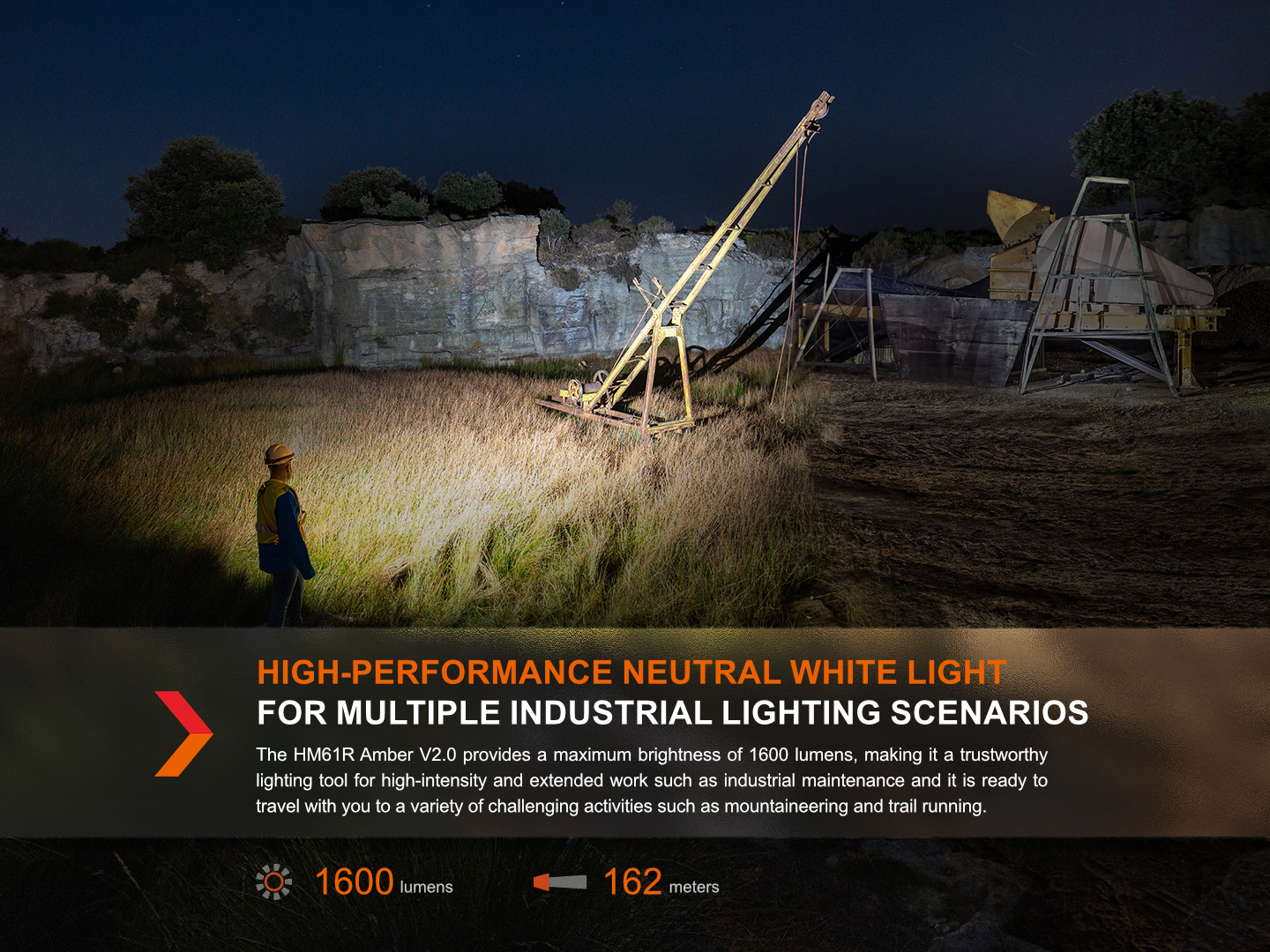 Nová generace nabíjecí čelovky Fenix HM61R Amber V2.0 nabízí světelný tok až 1600 lumenů (ANSI) neutrálního bílého světla (4500 K) s dosvitem až 162 metrů. Vybavena je i červenými LED Everlight.